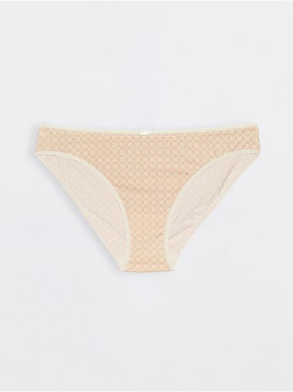 Трусы женские с низкой линией талии. Выполнены из трикотажного эластичного полотна. Подкладка ластовицы из неэластичного трикотажного х/б полотна. Отделка - бантик посередине верхнего среза передней детали.