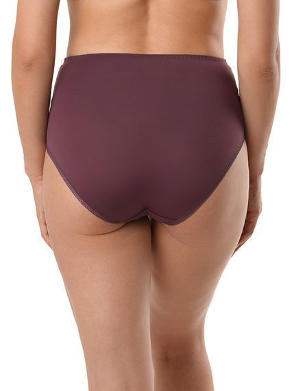 Трусы женские с высокой линией талии. Выполнены из эластичного трикотажного полотна. По верхнему краю передней детали настрочено эластичное кружево. Верхний край задней детали обработан эластичной тесьмой на машине зигзагообразной строчки, нижние края тру