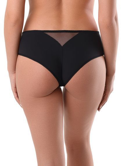 Трусы женские с низкой линией талии. Выполнены из эластичного трикотажного полотна, эластичного кружева и эластичного кружевного полотна. Подкладка передней детали из эластичного трикотажного сетчатого полотна. Подкладка ластовицы – из трикотажного х/б по