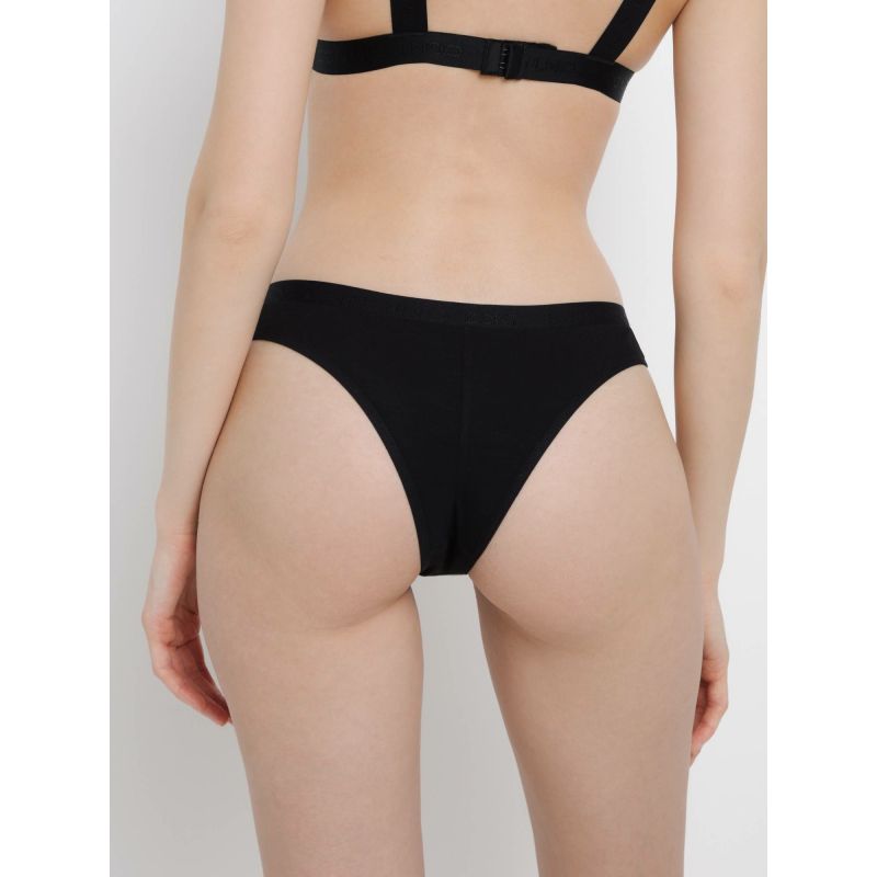 Трусы женские "BRAZILIANO" из эластичного трикотажного полотна. Ножки обработаны узкой эластичной тесьмой. По талии пришита широкая эластичная тесьма.