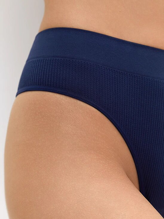 Бесшовные трусы-стринги из микрофибры с вафельным плетением, с высокой линией талии. Материал в составе обладает нежной текстурой, приятно ощущается на теле, превосходно пропускает воздух, впитывает влагу, хорошо сохраняет форму и цвет. Отсутствие боковых