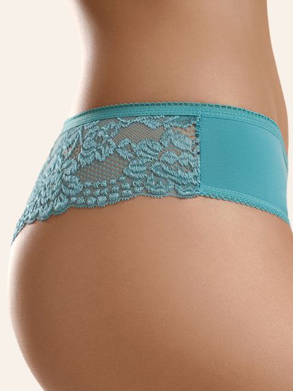 Трусы-стринги выполнены из высокогигиеничного хлопка в сочетании с мягким, эластичным кружевом с цветочным орнаментом, которое деликатно подчеркивает женственность. Максимальный комфорт при носке, используемый хлопок не подвержен деформации и пилингу. Края изделий обработаны мягкими эластиками с кружевными фестонами