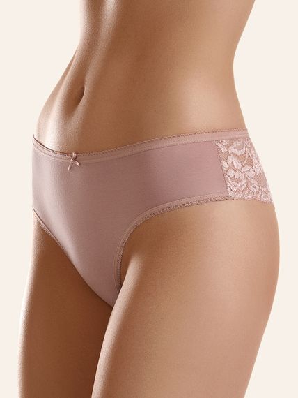 Трусы-стринги выполнены из высокогигиеничного хлопка в сочетании с мягким, эластичным кружевом с цветочным орнаментом, которое деликатно подчеркивает женственность. Максимальный комфорт при носке, используемый хлопок не подвержен деформации и пилингу. Края изделий обработаны мягкими эластиками с кружевными фестонами