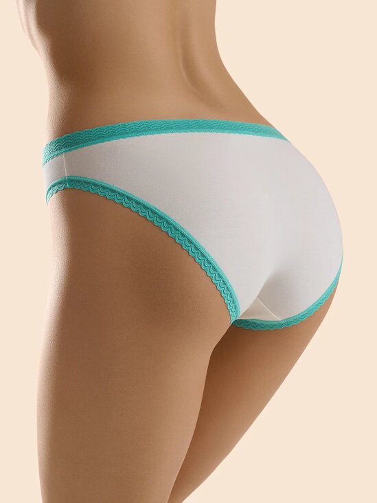 Трусы - слипы со средней линией талии и узкой боковиной. Практически полностью закрывают ягодицы. Изготовлены из хлопка, который отлично пропускает воздух, впитывает влагу, не подвержен деформации и пилингу, приятно прилегает к телу и подходит даже для самой чувствительной кожи. Мягкая резинка и деликатная обработка края обеспечивают почти незаметное прилегание. Ластовица выполнена из хлопка. Комфортная и стильная модель с контрастной цветной каймой. Идеальный вариант повседневного белья.
