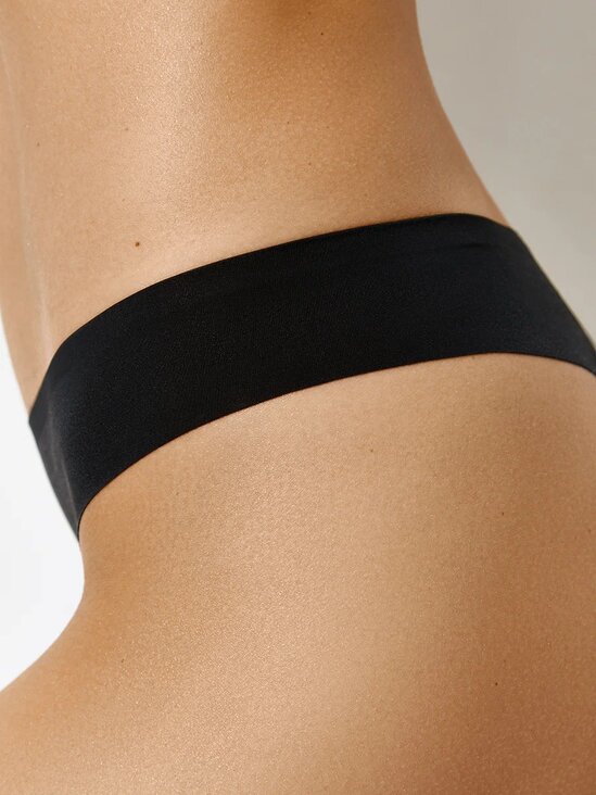 Трусы «стринги» со средней линией талии и узкой боковиной. Изготовлены из гладкой эластичной микрофибры по инновационной технологии лазерной обработки края Invisible, которая позволяет достичь идеального прилегания к телу. Материал обладает высокой воздухопроницаемостью, приятно ощущается, хорошо сохраняет форму и цвет. Комфортный пояс с термоклеевой обработкой, лазерная обработка края изделия и ластовица из хлопка обеспечивают оптимальный комфорт. Соблазнительно подчеркивают бедра благодаря плоскому центральному шву сзади, полностью открывают ягодицы.