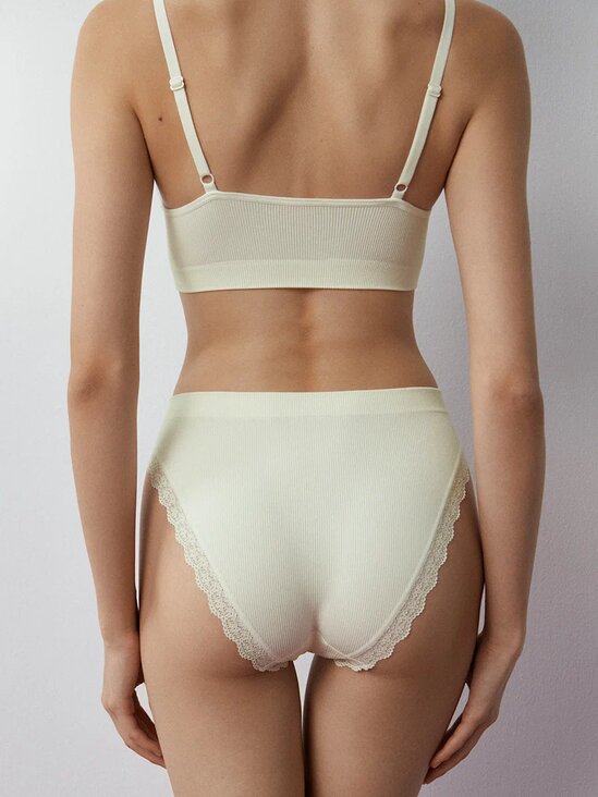 Комфортные трусы-слипы в рубчик со средней линией талии и широкой боковиной. Вырезы по линии бедра обработаны ажурным кружевом с изящным цветочным рисунком. Изготовлены из мягкой микрофибры, которая отлично пропускает воздух, обладает нежной текстурой и приятно ощущается на коже, хорошо сохраняет форму и цвет. Бесшовная технология производства Seamless обеспечивает отсутствие боковых швов и максимальную свободу движений. Удобная вывязанная резинка мягко фиксирует и позволяет достичь идеального облегания.