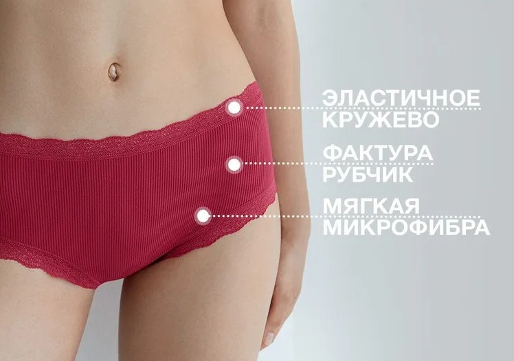 Комфортные трусы–шорты в рубчик со средней линией талии. Пояс и вырезы по линии бедра обработаны ажурным кружевом с изящным цветочным рисунком. Изготовлены из мягкой микрофибры, которая превосходно пропускает воздух, обладает нежной текстурой и приятно ощущается на коже, хорошо сохраняет форму и цвет. Бесшовная технология производства Seamless обеспечивает отсутствие боковых швов и максимальную свободу движений. Стильные и женственные шортики на каждый день.