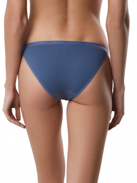 Трусы женские TANGA с низкой посадкой из однотонного трикотажного полотна. Талия обработана эластичной тесьмой плоским швом. Ножки обработаны узкой эластичной тесьмой плоским швом. Ластовица двойная отрезная спереди и сзади.