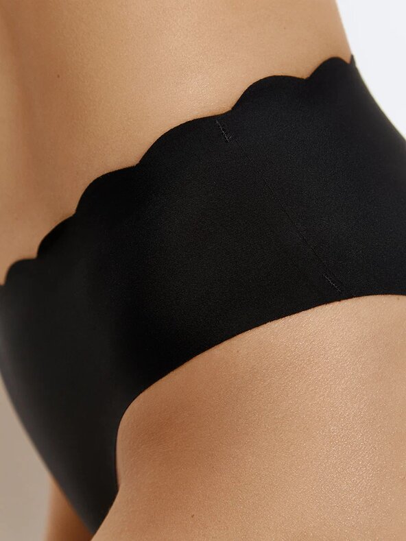 Трусы «слипы» со средней линией талии и узкой боковиной. Практически полностью закрывают ягодицы. Изготовлены из гладкой эластичной микрофибры по инновационной технологии лазерной обработки края Invisible, которая позволяет достичь идеального прилегания к телу. Материал обладает высокой воздухопроницаемостью, приятно ощущается, хорошо сохраняет форму и цвет. Ластовица из хлопка обеспечивает максимальный комфорт. Оригинальный дизайн пояса создан с помощью фигурной лазерной обработки края. Отлично сочетаются с тонкой и облегающей одеждой.