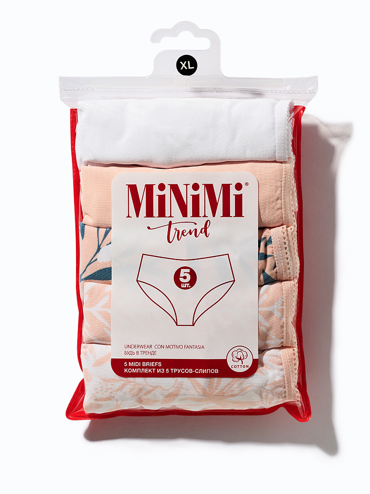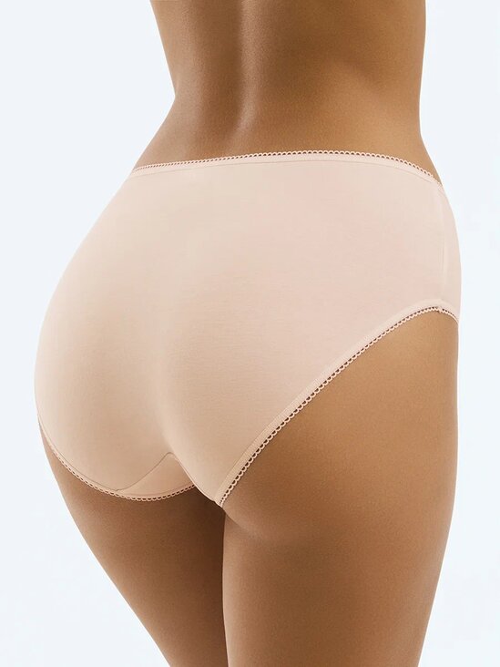 Трусы - слипы со средней линией талии с широкой боковиной. Практически полностью закрывают ягодицы. Изготовлены из высокогигиеничного хлопка, который не подвержен деформации и пилингу, отлично пропускает воздух, впитывает влагу и подходит даже для самой чувствительной кожи. Края, обработанные мягкими эластиками с кружевными фестонами, создают дополнительный комфорт.