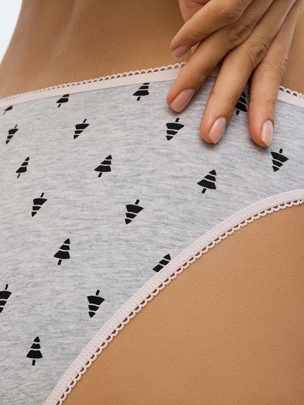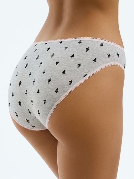 Трусы - слипы со средней линией талии и узкой боковиной. Практически полностью закрывают ягодицы. Изготовлены из высокогигиеничного хлопка, который отлично пропускает воздух, впитывает влагу, не подвержен деформации и пилингу, приятно прилегает к телу и подходит даже для самой чувствительной кожи. Края, обработанные мягкими эластиками с кружевными фестонами, создают дополнительный комфорт. Универсальные повседневные слипы, которые идеально дополнят бельевой гардероб.