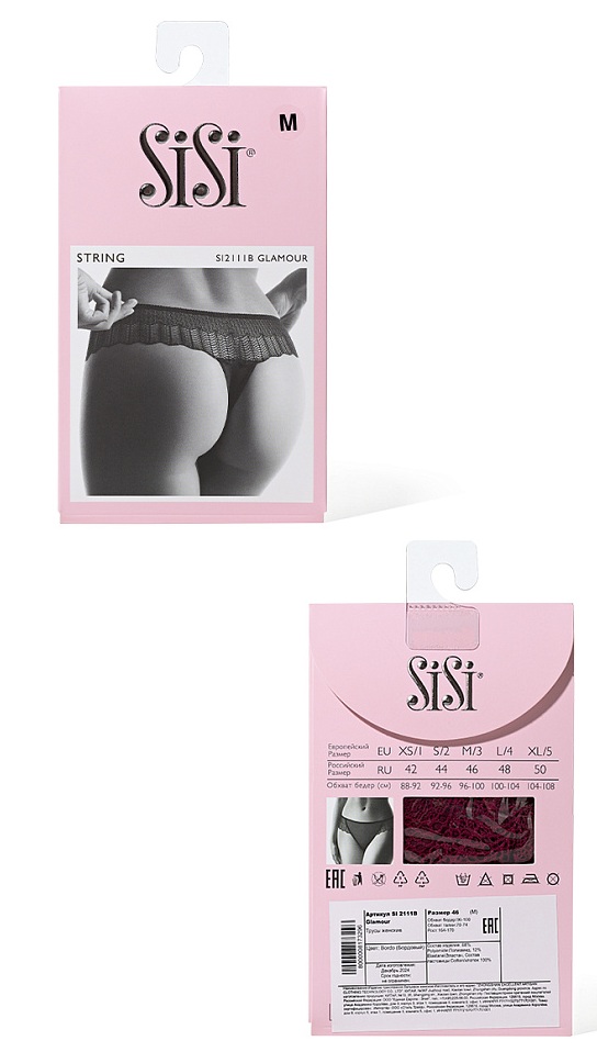 Трусы «стринги» из мягкой сетки с декоративным поясом из ажурного кружева и средней линией талии. Соблазнительно подчеркивают бедра, практически полностью открывают ягодицы и создают эффект полупрозрачной вуали на обнаженной коже. Мягкая резинка и деликатная обработка края обеспечивают почти незаметное прилегание. Гигиеничная ластовица из хлопка обеспечивает дополнительный комфорт.