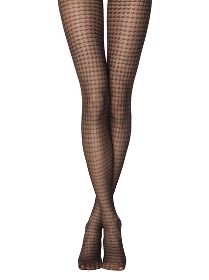 Тонкие эластичные колготки 30 ден однородные по всей длине с ажурным рисунком "гусиные лапки", плоский шов, хлопковая ластовица.