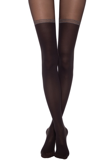 Плотные эластичные фантазийные колготки 50 ден с рисунком "имитация гольфинов с рисунком из люрекса", плоский шов, хлопковая ластовица.