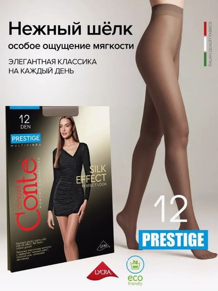Тонкие эластичные колготки Conte PRESTIGE 12 den с эффектом "нежный шелк" создают особое ощущение мягкости. Колготки связаны из мультифиламентных нитей, благодаря строению которых полотно получается ультрапрочным, гладким, с легким глянцевым блеском. Ненавязчивое, благородное сияние полотна делает ноги безупречно гладкими и стройными. Хлопковая ластовица в размерах 2-4, большая вставка в размере 5, уплотненный мысок, плоский шов без шортиков. Колготки идеально облегают и дают ощущение второй кожи. Колготки PRESTIGE - элегантная классика на каждый день. Интернет-магазин Kypioptom.ru предлагает купить колготки Конте ПРЕСТИЖ 12 ден оптом и в розницу по выгодным ценам.