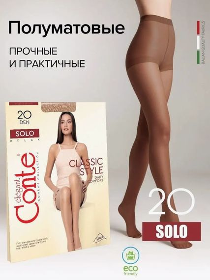 Тонкие прозрачные колготки Conte Solo 20 den с усиленной верхней частью, уплотненным мыском и эластичным швом. Данная модель предназначена для повседневной носки, подойдёт как для деловых нарядов, так и для вечерних. Вы ощутите максимальный комфорт, чувствуя себя уверенно и элегантно. Прозрачные эластичные колготки SOLO практичные, прочные и устойчивые к повреждениям. SOLO дарят легкость и комфорт на протяжении всего дня. Классическая модель. Идеальные колготки на каждый день и для особого случая. Особенности модели: прочные и практичные; полуматовые; усиленный торс в виде шортиков; большая вставка в 6 размере; уплотненный мысок; классическая базовая модель. Интернет-магазин Kypioptom.ru предлагает купить колготки Конте Solo 20 ден оптом и в розницу по выгодным ценам.