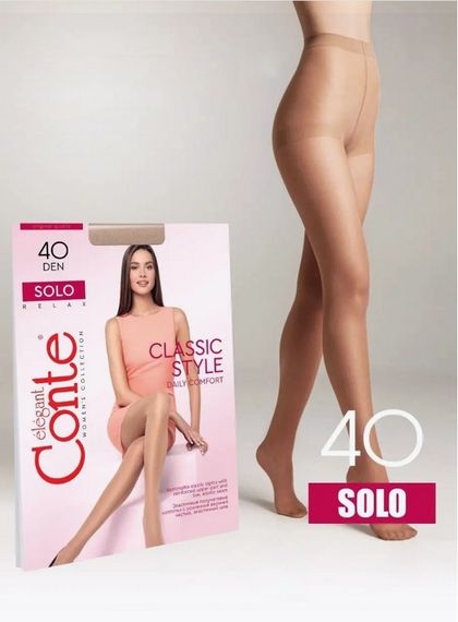 Полуматовые эластичные колготки Conte SOLO 40den практичные, прочные и устойчивые к повреждениям.SOLO дарят легкость и комфорт на протяжении всего дня.Классическая модель. Идеальные колготки на каждый день и для особого случая. Особенности модели: прочные и практичные, полуматовые, усиленный торс в виде шортиков, большая вставка в размерах 6-7, уплотненный мысок, классическая базовая модель, идеальны на каждый день.Интернет-магазин Kypioptom.ru предлагает купить колготки конте Solo 40 ден оптом и в розницу по выгодным ценам.