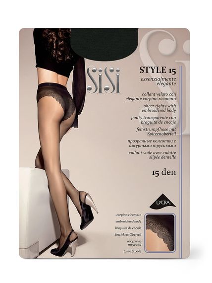 Тонкие эластичные колготки 15 DEN с ажурными трусиками и гигиеничной ластовицей, невидимым мыском.