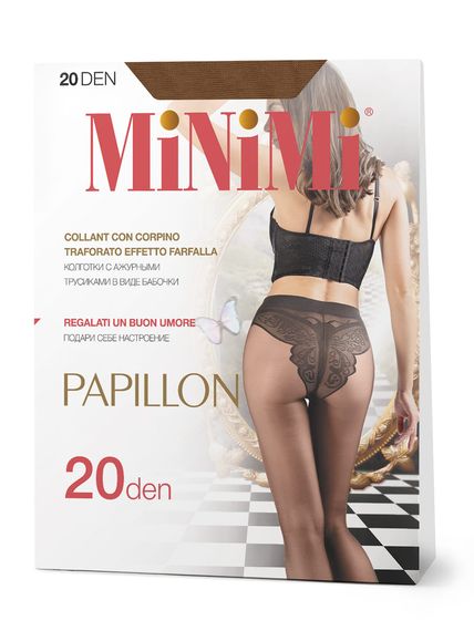 Женские эластичные колготки 20 den с уникальными ажурными трусиками в виде бабочки. Сочетание премиального материала и современной технологии двойной обкрутки полиамидом минимизирует контакт эластана с кожей, обеспечивает повышенную прочность и снижает ве