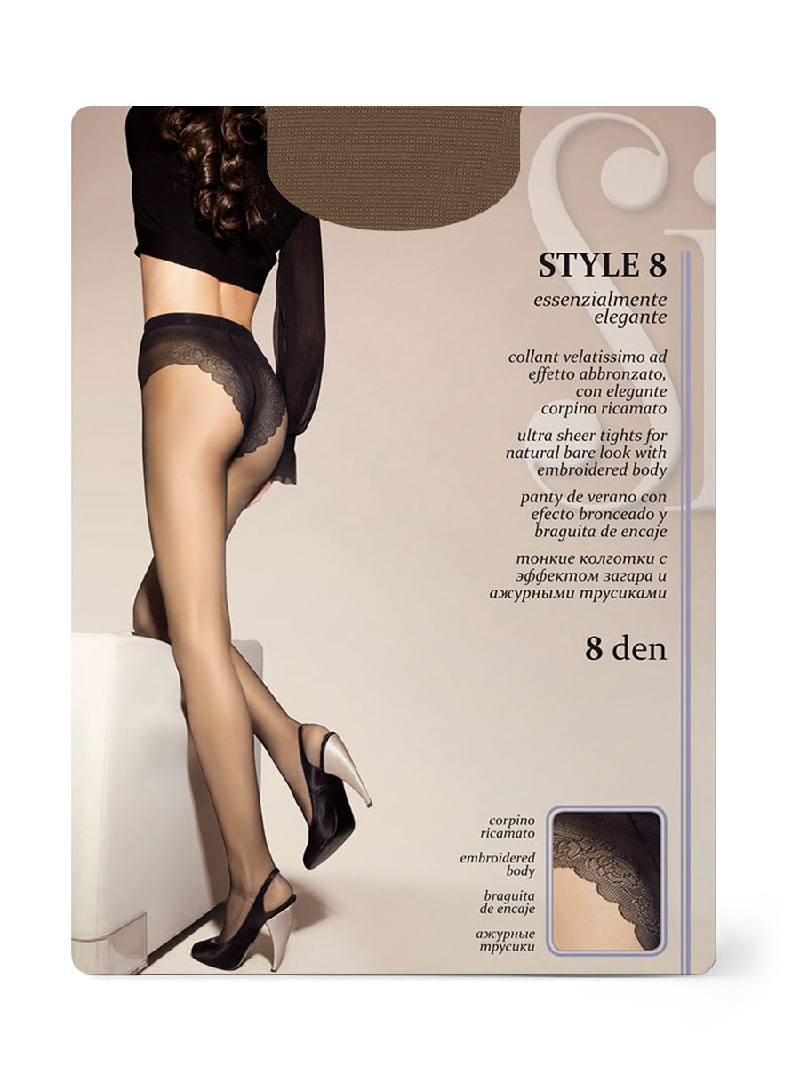 Тонкие летние колготки 8 DEN с ажурными трусиками, комфортными швами, гигиеничной ластовицей и невидимым мыском.