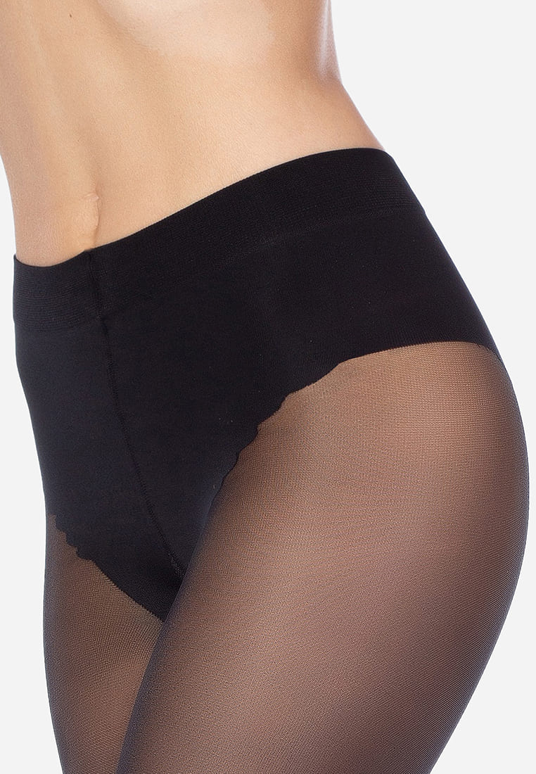 Эластичные поддерживающие колготки с утягивающим эффектом в области живота и ягодиц, массажным эффектом по ноге. Трусики бикини, гигиеничная ластовица, комфортные швы.