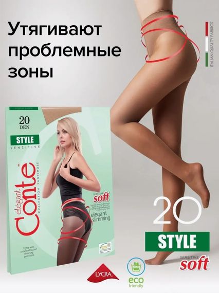 Тонкие женские колготки Conte STYLE 20 с плотными корректирующими ажурными трусиками утягивают проблемные зоны, мгновенно моделируя силуэт. Колготки созданы для женщин, специально для чувствительной кожи: дарят мягкость и абсолютный комфорт Вашим ногам, благодаря специальным нитям. Особенности модели: тонкие колготки, плотность 20 Den, корректирующие ажурные трусики с плотностью 90 Den, плоский шов, укрепленный мысок, хлопковая ластовица. Колготки STYLE 20 моделируют силуэт, утягивают проблемные зоны, идеально подходят обладательницам чувствительной кожи. Интернет-магазин Kypioptom.ru предлагает купить колготки Конте СТИЛЬ 20 ден оптом и в розницу по выгодным ценам.