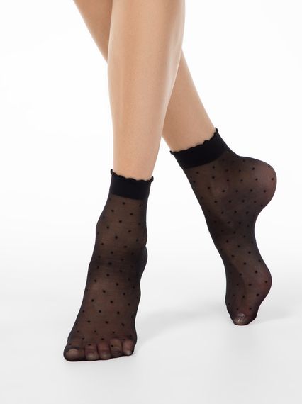 Тонкие эластичные носки 20 ден с бортом, без пятки, рисунок "точки .