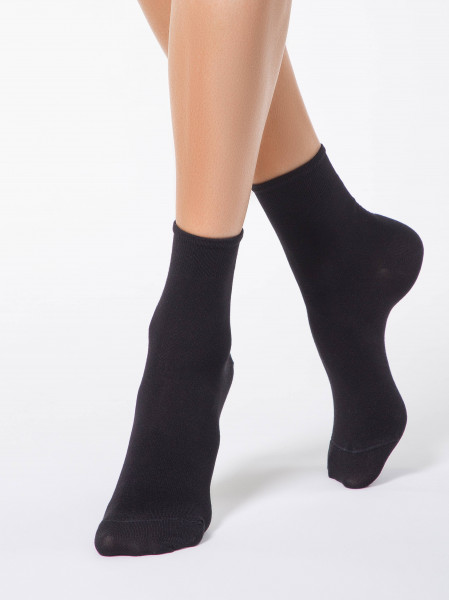 Классические женские носки из бамбука, с бортом, состоящим из двух частей: одинарного и двойного, однотонные.