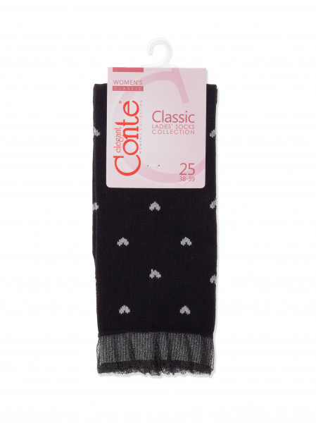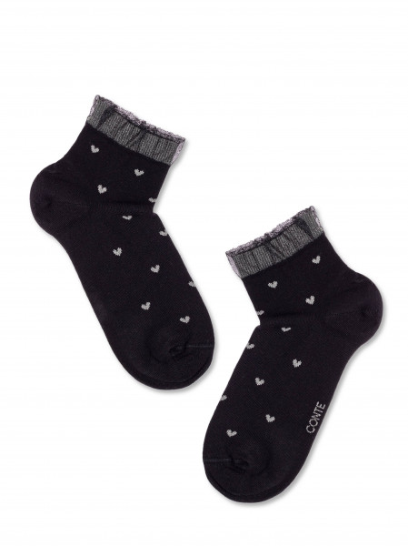 Хлопковые носки с воздушным бортом и сердечками из нитей люрекса созданы, чтобы расставлять оригинальные акценты в повседневном и спортивном образе.