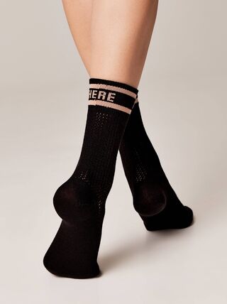 Удлиненные хлопковые носки c ажурным переплетением из серии Active с рисунком «Focus» созданы, чтобы стать стильным дополнением повседневных, спортивных и домашних образов.