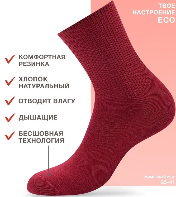 Женские высокие носки ECO 254 с широкой анатомической резинкой. Мягкий хлопок, входящий в состав изделия, обладает высокой воздухопроницаемостью, впитывает влагу, и подходит для чувствительной кожи. Добавление эластана увеличивает износостойкость и прочность. Удобные, с анатомической резинкой, которая создает эффект распределенного давления, минимизирует проявления усталости и обеспечивает максимальный комфорт, и кеттельным (плоским) швом на мыске.
