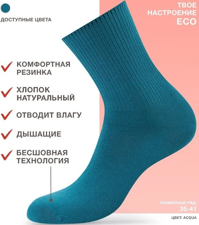 Женские высокие носки ECO 254 с широкой анатомической резинкой. Мягкий хлопок, входящий в состав изделия, обладает высокой воздухопроницаемостью, впитывает влагу, и подходит для чувствительной кожи. Добавление эластана увеличивает износостойкость и прочность. Удобные, с анатомической резинкой, которая создает эффект распределенного давления, минимизирует проявления усталости и обеспечивает максимальный комфорт, и кеттельным (плоским) швом на мыске.