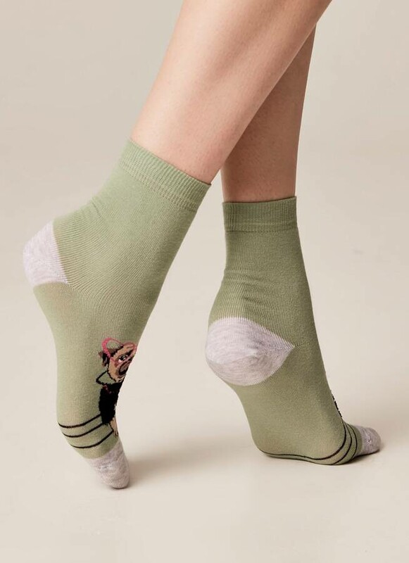 Хлопковые носки классической длины. Комфортная широкая резинка. Необычный пушистый мягкий рисунок. При носке комфортно, но притягивает взгляды. Очень мило.