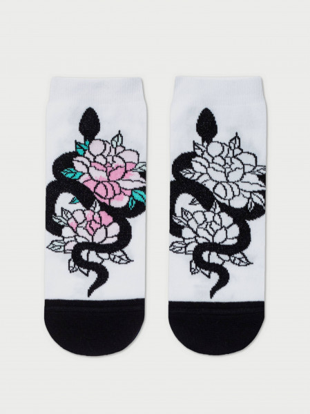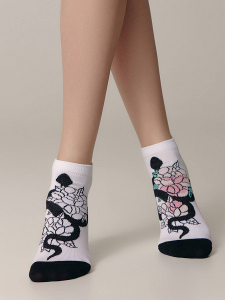 Укороченные женские носки из хлопка, с необычными ассиметричными или разными рисунками