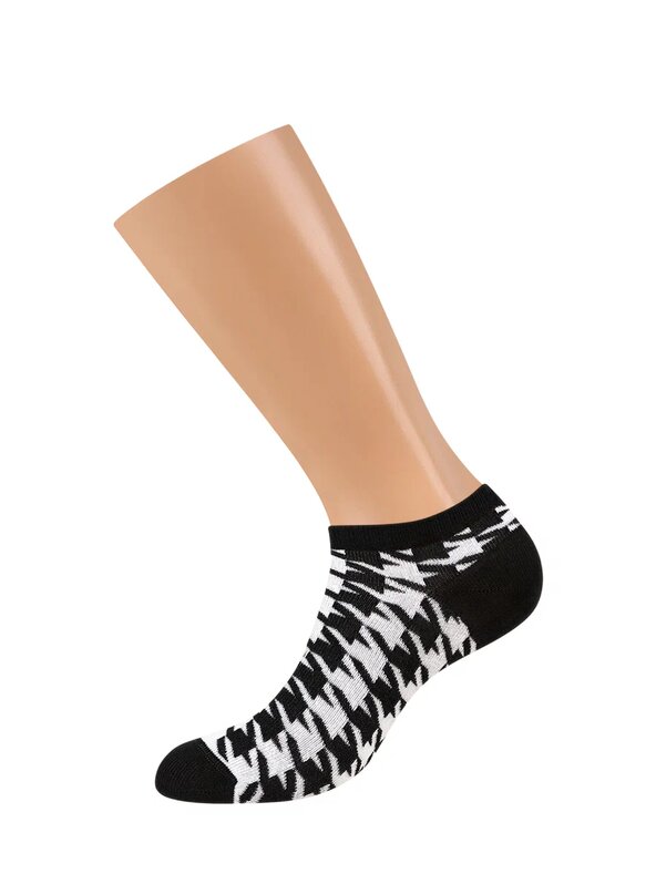 Женские укороченные носки с рисунком «гусиная лапка». Выполнены из мягкого хлопка, который отлично пропускает воздух, впитывает влагу и подходит даже для самой чувствительной кожи. Удобная резинка и кеттельный (плоский) шов на мыске обеспечивают оптимальный комфорт и превосходное облегание. Принт «гусиная лапка» - вневременной орнамент, который навсегда останется актуальной модной классикой. Он стильный, лаконичный и эффектно дополняет самые разные образы - от спорт шика и уличного до делового или повседневного.