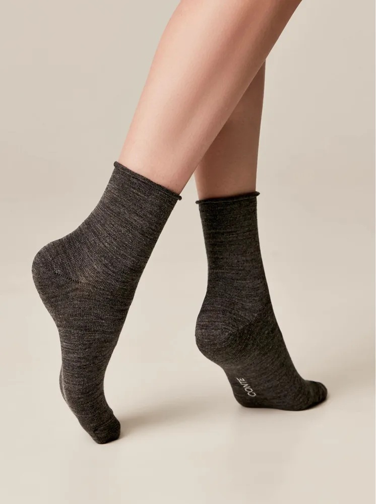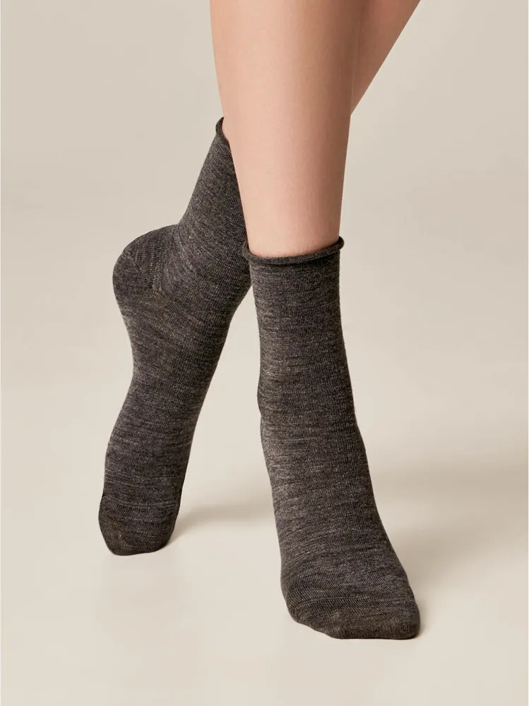 Комфортные теплые удлиненные женские носки из полушерстяной пряжи, без резинки, однотонные.