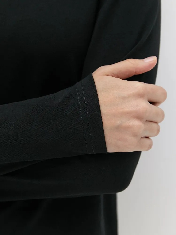 Женский лонгслив прямого кроя с длинными рукавами и круглым вырезом горловины. Изготовлен из тактильно приятного хлопка с эластаном, который отлично пропускает воздух, приятно ощущается на теле и подходит даже для самой чувствительной кожи.