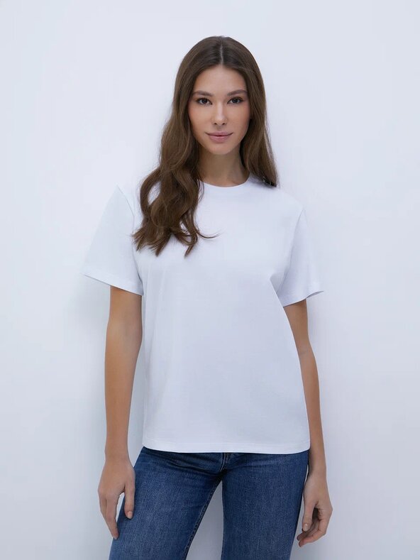 Женская футболка с коротким рукавом. В составе – высококачественный хлопок, который обладает отличной воздухопроницаемостью, хорошо впитывает влагу и подходит даже для чувствительной кожи, и эластан, который позволяет создать полуприлегающий силуэт и способствует длительному сохранению формы и цвета. Удобная, легкая и стильная. Благодаря прямому крою и свободному силуэту эффектно смотрится независимо от типа фигуры, обеспечивает свободу движений, и подходит как для занятий спортом, так и на каждый день.