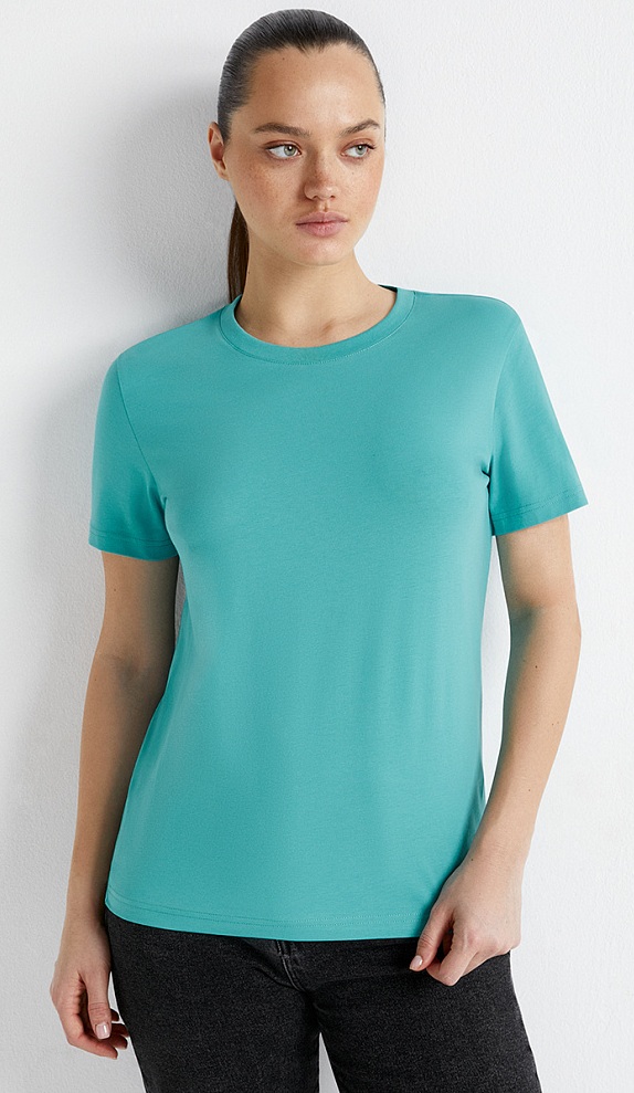 Женская футболка с коротким рукавом. В составе – высококачественный хлопок, который обладает отличной воздухопроницаемостью, хорошо впитывает влагу и подходит даже для чувствительной кожи, и эластан, который позволяет создать полуприлегающий силуэт и способствует длительному сохранению формы и цвета. Удобная, легкая и стильная. Благодаря прямому крою и свободному силуэту эффектно смотрится независимо от типа фигуры, обеспечивает свободу движений, и подходит как для занятий спортом, так и на каждый день.
