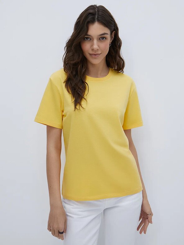 Женская футболка с коротким рукавом. В составе – высококачественный хлопок, который обладает отличной воздухопроницаемостью, хорошо впитывает влагу и подходит даже для чувствительной кожи, и эластан, который позволяет создать полуприлегающий силуэт и способствует длительному сохранению формы и цвета. Удобная, легкая и стильная. Благодаря прямому крою и свободному силуэту эффектно смотрится независимо от типа фигуры, обеспечивает свободу движений, и подходит как для занятий спортом, так и на каждый день.