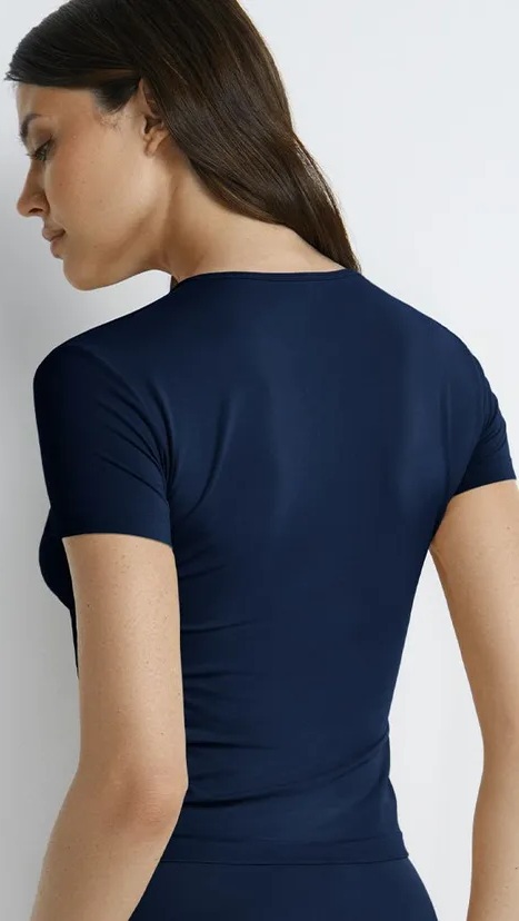 Женская полуприлегающая футболка с коротким рукавом. Изготовлена из тонкой, бархатистой микрофибры (PA 66), которая приятно ощущается на теле, обладает высокой воздухопроницаемостью и обеспечивает свободу движений. Мягкая резинка и деликатная обработка края создают дополнительный комфорт.