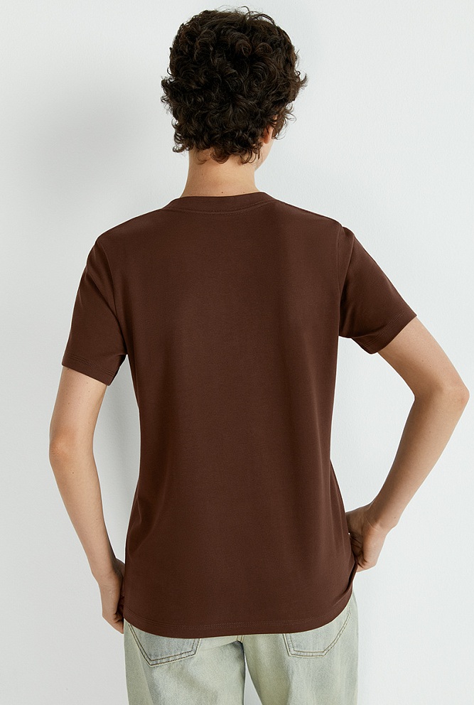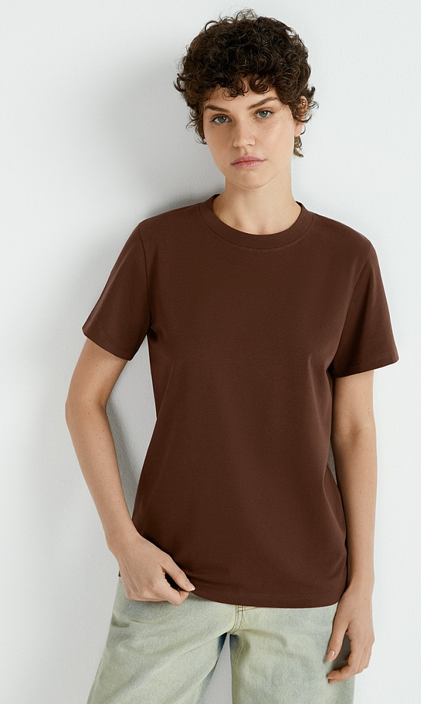 Женская футболка прилегающего силуэта с коротким рукавом, округлой горловиной и длиной чуть выше линии бёдер. Изготовлена из мягкого хлопка, который обладает высокой воздухопроницаемостью, приятно ощущается на теле и подходит даже для чувствительной и нежной кожи. Низ изделия и рукава деликатно обработаны с использованием плоскошовной технологии, что обеспечивает дополнительный комфорт. Декоративная строчка добавляет утончённости и визуальной завершённости. Современная база с акцентом на комфорт и эстетику: лаконичный силуэт легко впишется в городской гардероб, дополняя как расслабленные, так и выверенные образы с актуальным звучанием.