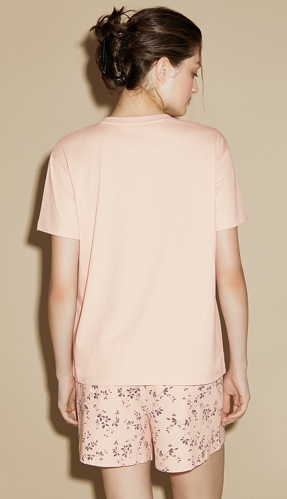 Женская пижама с цветочным принтом: футболка прямого кроя с короткими рукавами, круглым вырезом и рисунком на левом плече, а также свободные шорты с удобными карманами и поясом на резинке. Изготовлена из 100% мягкого, гребенного хлопка, который отлично пропускает воздух, приятно ощущается на теле и подходит даже для самой чувствительной кожи. Лёгкая, нежная и изящная пижама с акварельным цветочным принтом мильфлёр идеально подходит для дома и сна.