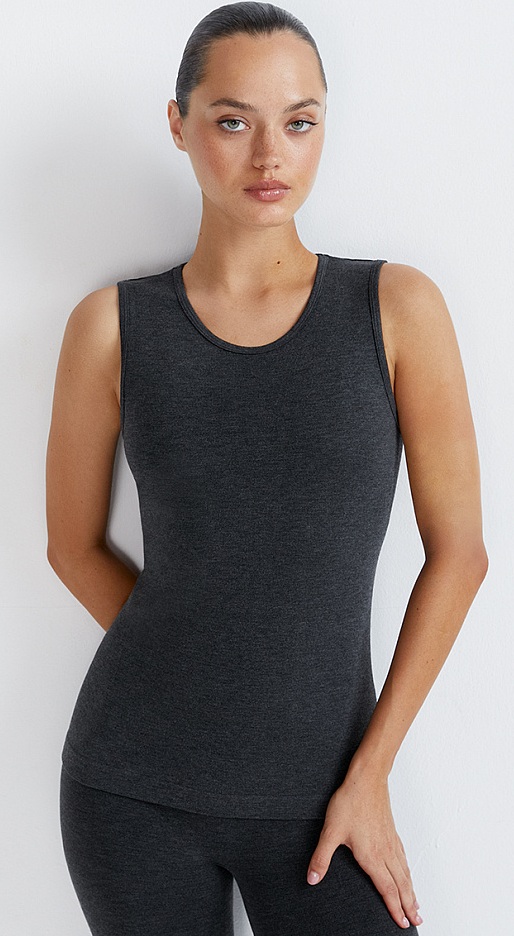 Бесшовная женская майка модель "Термо" с терморегулирующим эффектом. Изготовлена по комбинированной технологии из вискозы, шерсти мериноса, акрила и эластана. Гладкая и нежная вискоза отлично пропускает воздух и отводит влагу, регулирует теплообмен и подходит для чувствительной кожи. Шерсть мериноса обеспечивает максимальное сохранение тепла. Акрил способствует быстрому отведению влаги и поддержанию комфортной температуры. Бесшовная технология Seamless обеспечивает полное отсутствие боковых швов, превосходное облегание, исключает натирание и раздражение кожи. Подходит для повседневного использования. Рекомендовано носить при T от +5°С до -15°С.