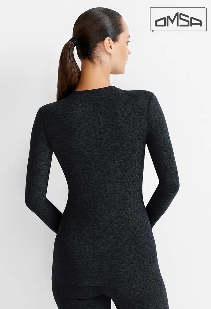 Облегающий женский лонгслив модель "Термо" с терморегулирующим эффектом. Выполнен по гибридной трехслойной технологии из шелка, шерсти и полиэстера. Первый (внутренний) слой - высококачественный шелк, который обладает нежной текстурой, приятен при соприкосновении с кожей и не вызывает аллергии. Промежуточный слой из шерсти обеспечивает оптимальный воздухообмен и отлично сохраняет тепло. Третий (внешний) слой способствует быстрому отведению влаги и поддержанию комфортной температуры. Лазерная обработка края Invisible способствует идеальному прилеганию материала к телу. Плоские швы защищают кожу от натирания. Лонгслив незаметен под одеждой второго слоя. Подходит для повседневного использования. Рекомендовано носить при T от +5°C до -30°C.